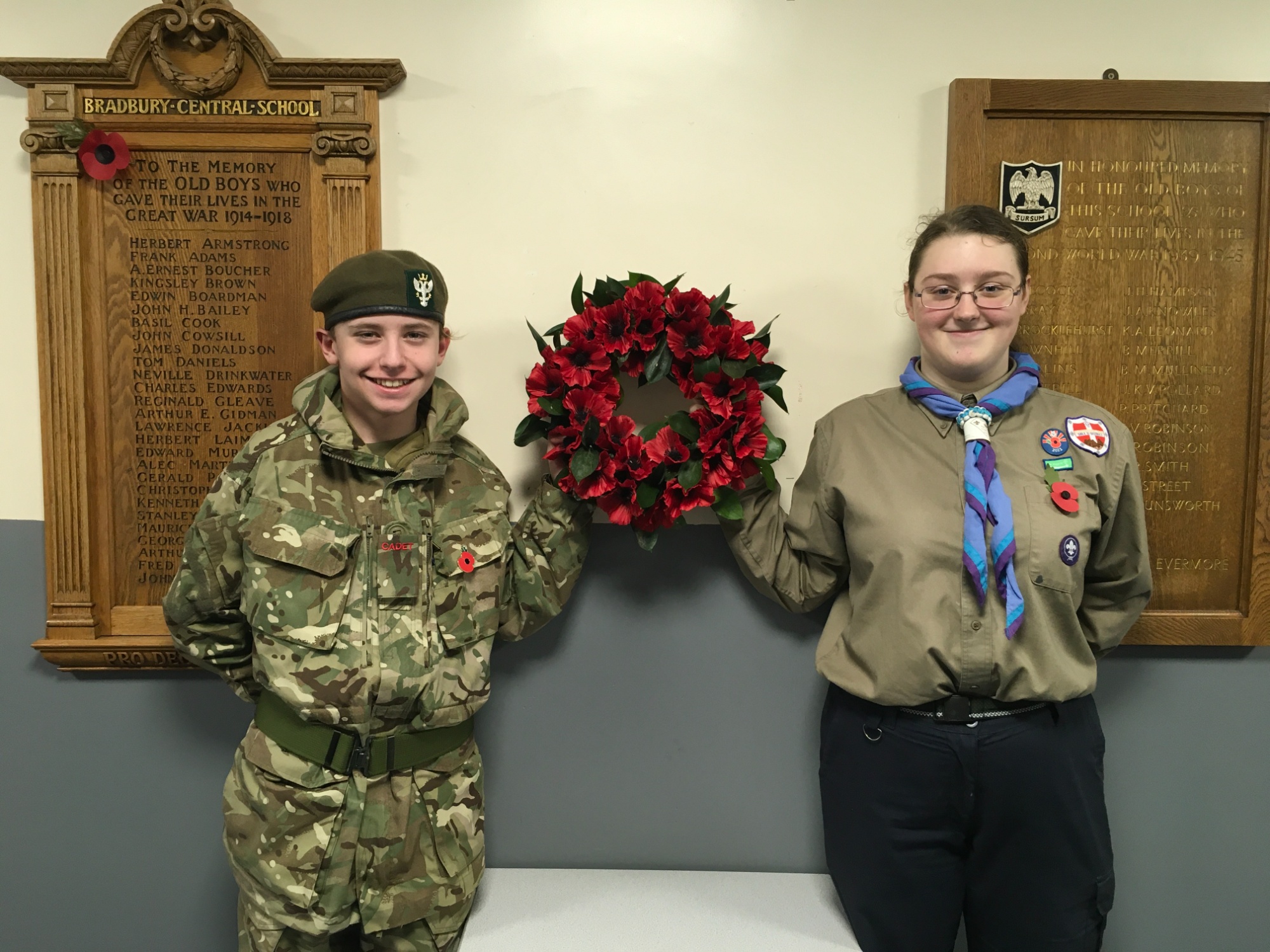 Did you know that a piece of history from Bradbury school can still be seen at Altrincham College today? The war memorials shown below used to be in the hall at Bradbury and when this closed, the memorial came with the students to their new school on Green Lane.