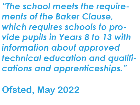 - To find out about technical education qualifications and apprenticeships opportunities, as part of a careers programme which provides information on the full range of education and training options available at each transition point.