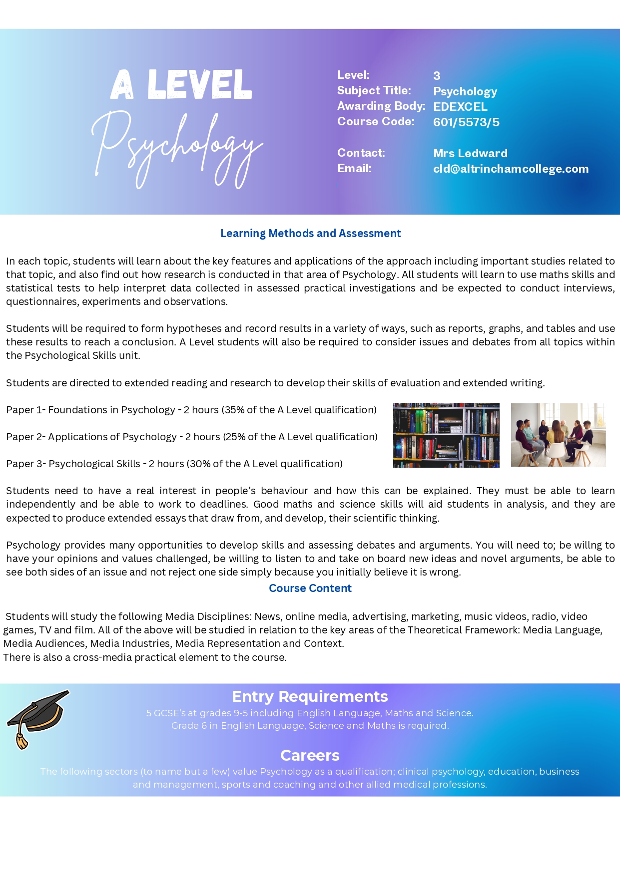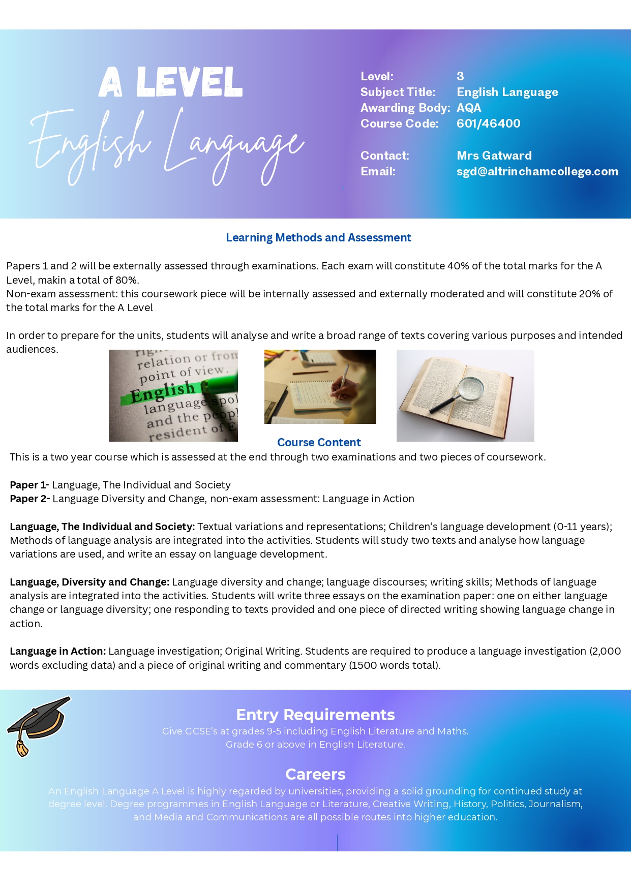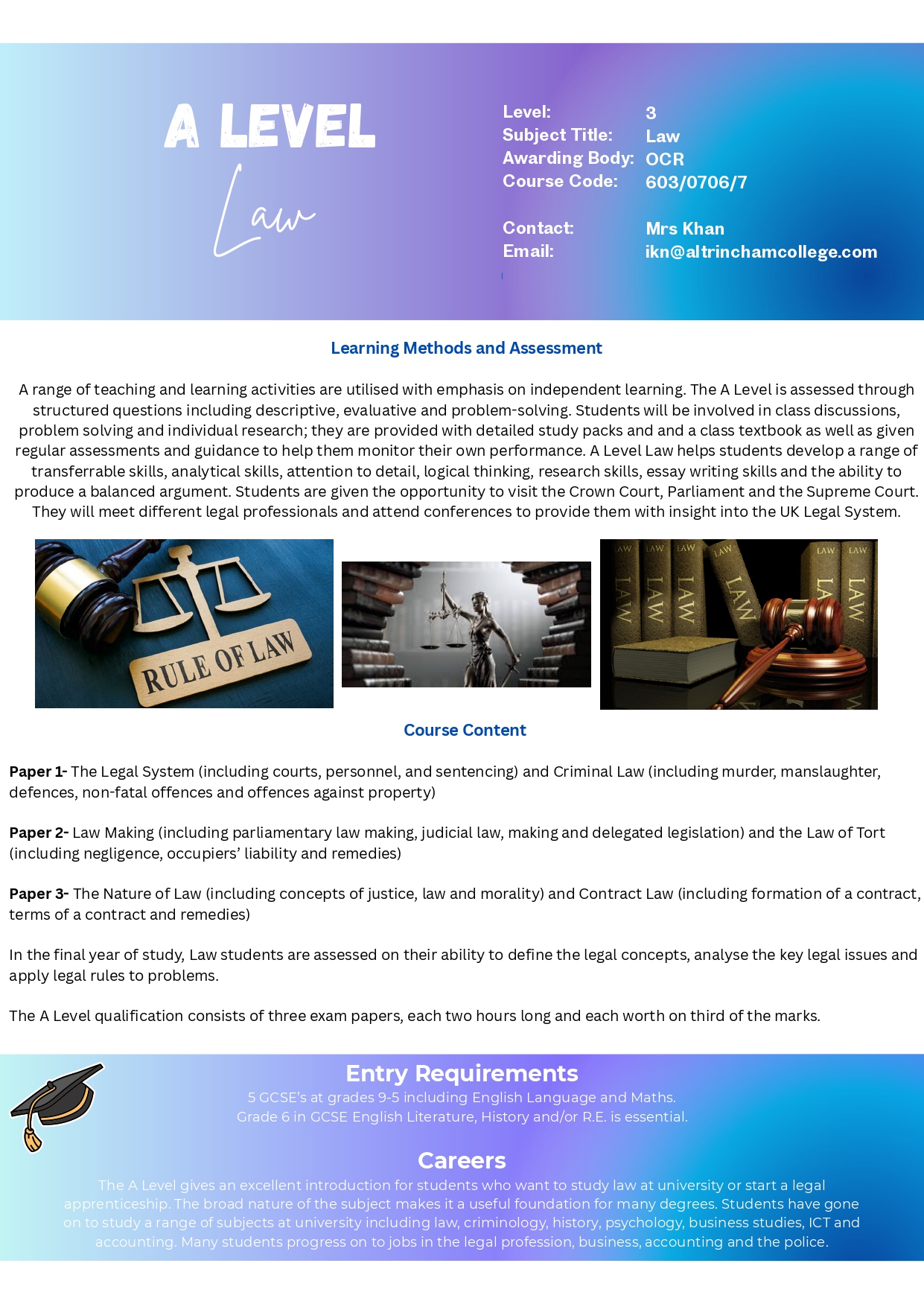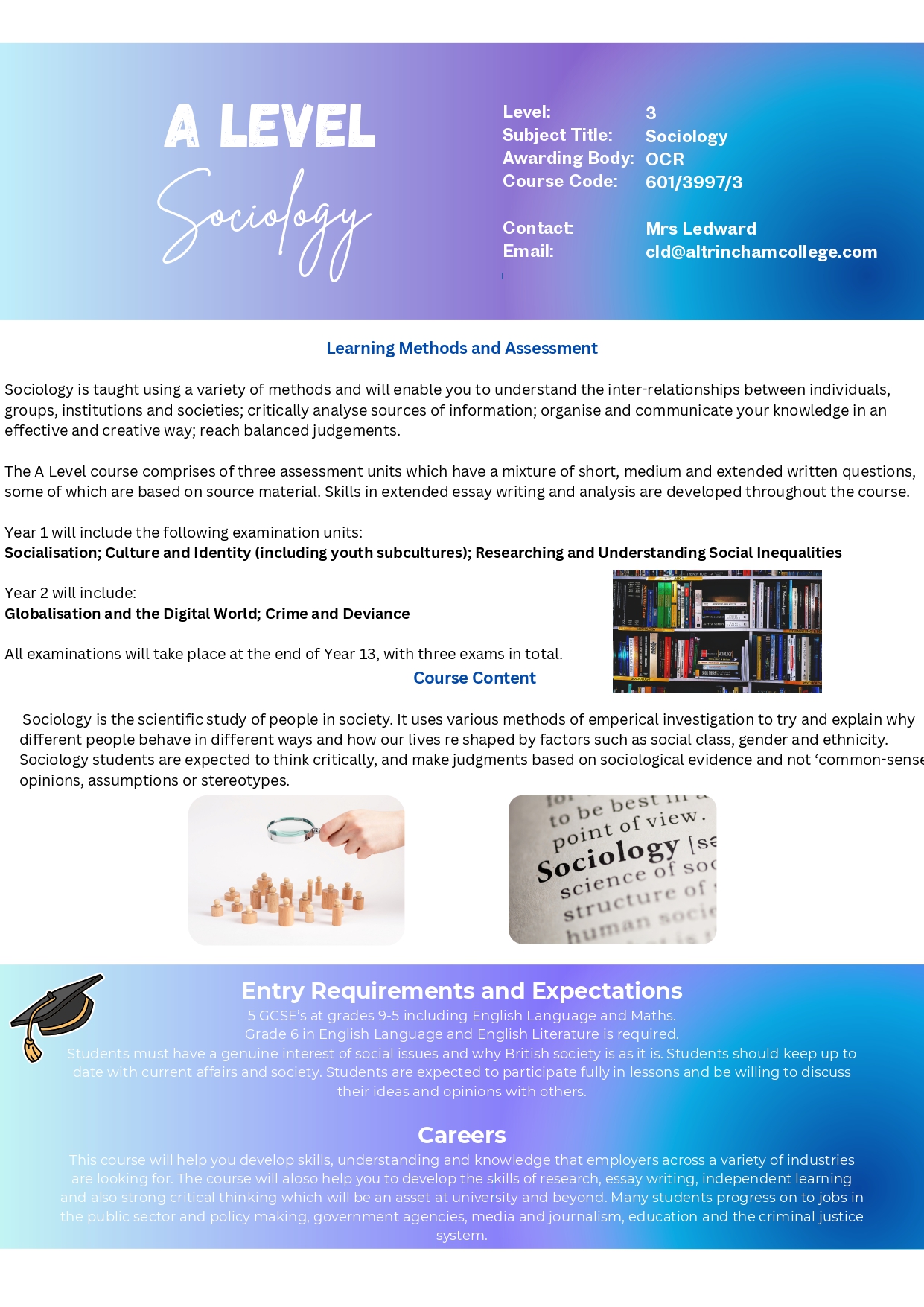 For more detailed information about our level 3 courses, please read the subject guides below.